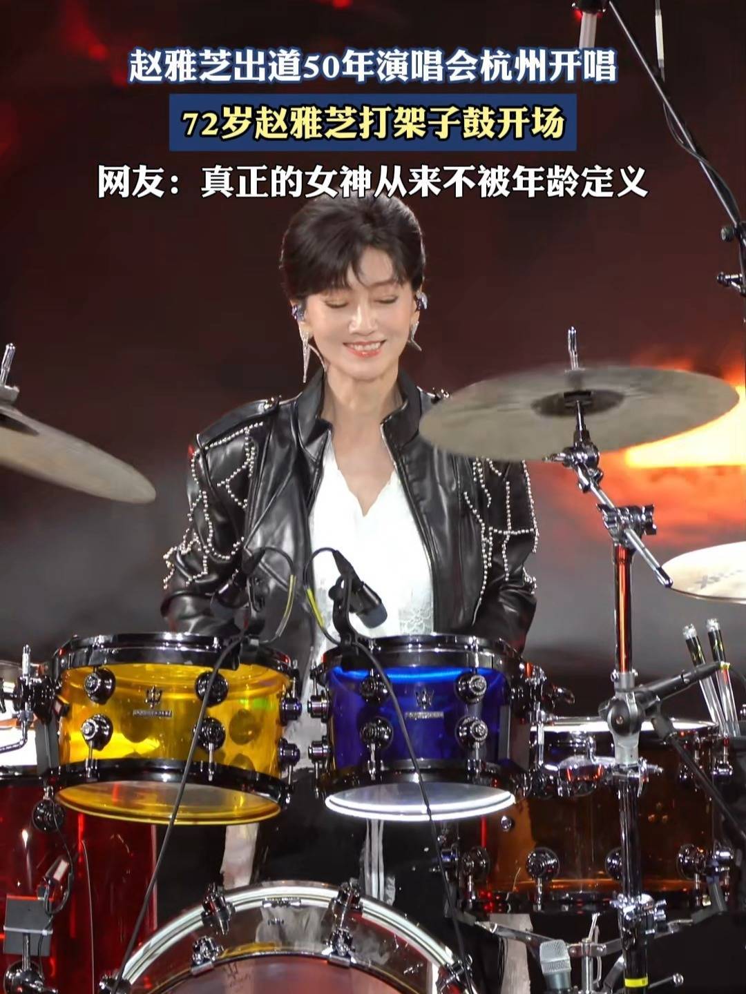 杭州演唱会的聚光灯下,72岁的赵雅芝穿着黑色皮衣坐在架子鼓前,鼓槌落下的瞬间《潇洒走一回》的前奏炸响全场。谁能想到这位奶奶辈的艺人,双手挥舞鼓棒时青筋暴起却眼神如炬,扫腿动作干脆利落得让台下00后粉丝集体起立尖叫。这不是特效电影里的虚拟偶像,而是真实存在的“冻龄神话”——当同龄人在公园遛弯带孙子时,她用一场50周年从艺派对告诉世界:岁月从来不是枷锁,而是自带BGM的T台。